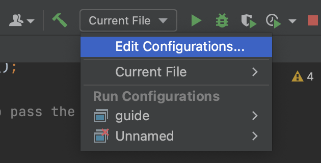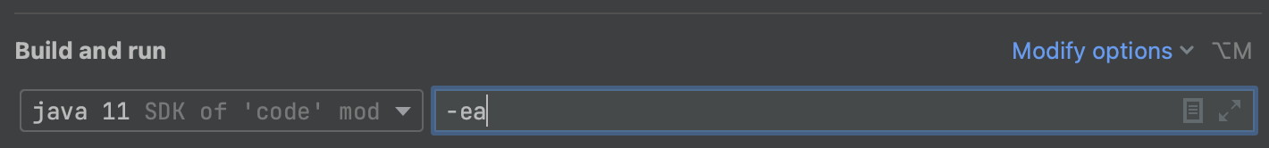 assert 문을 사용했기에 나타나는 에러이고, 해결 방법 또한 에러 메세지에 나와있다. 그러나 intelliJ 에서 설정하는 방법을 찾기 위해 시간이 걸렸다. Intellij ide 에서 설정하는 방법에 대해 설명하겠다.