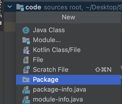 project root 에서 package로 Test 폴더를 생성합니다.